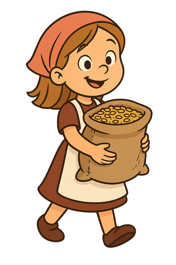 Dann kullern die Getreidekörner hinein und werden zu Mehl gemahlen