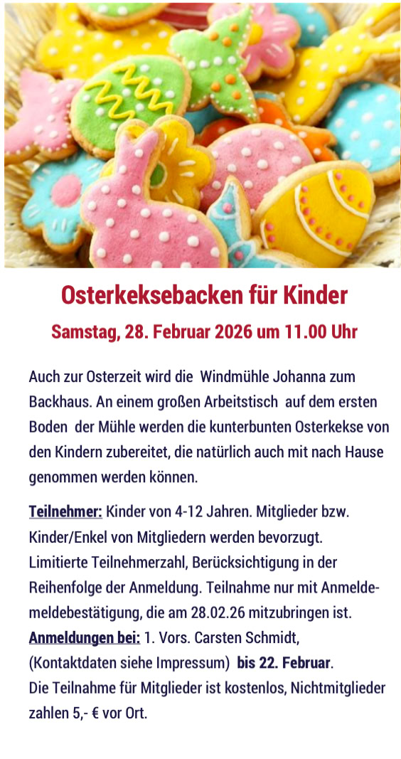 Sa. 28.02.2026: 11:00 Osterkeksebacken für Kinder